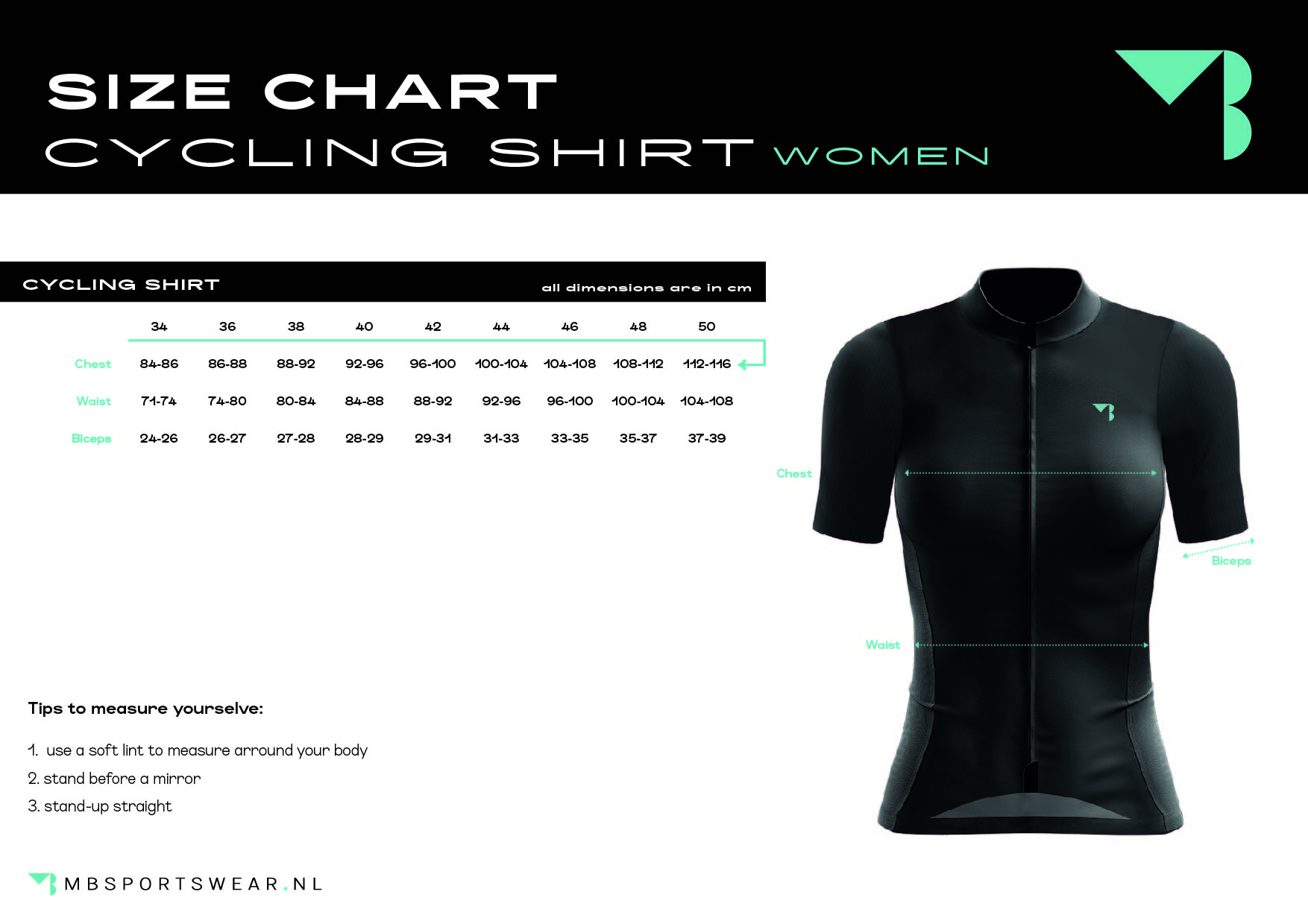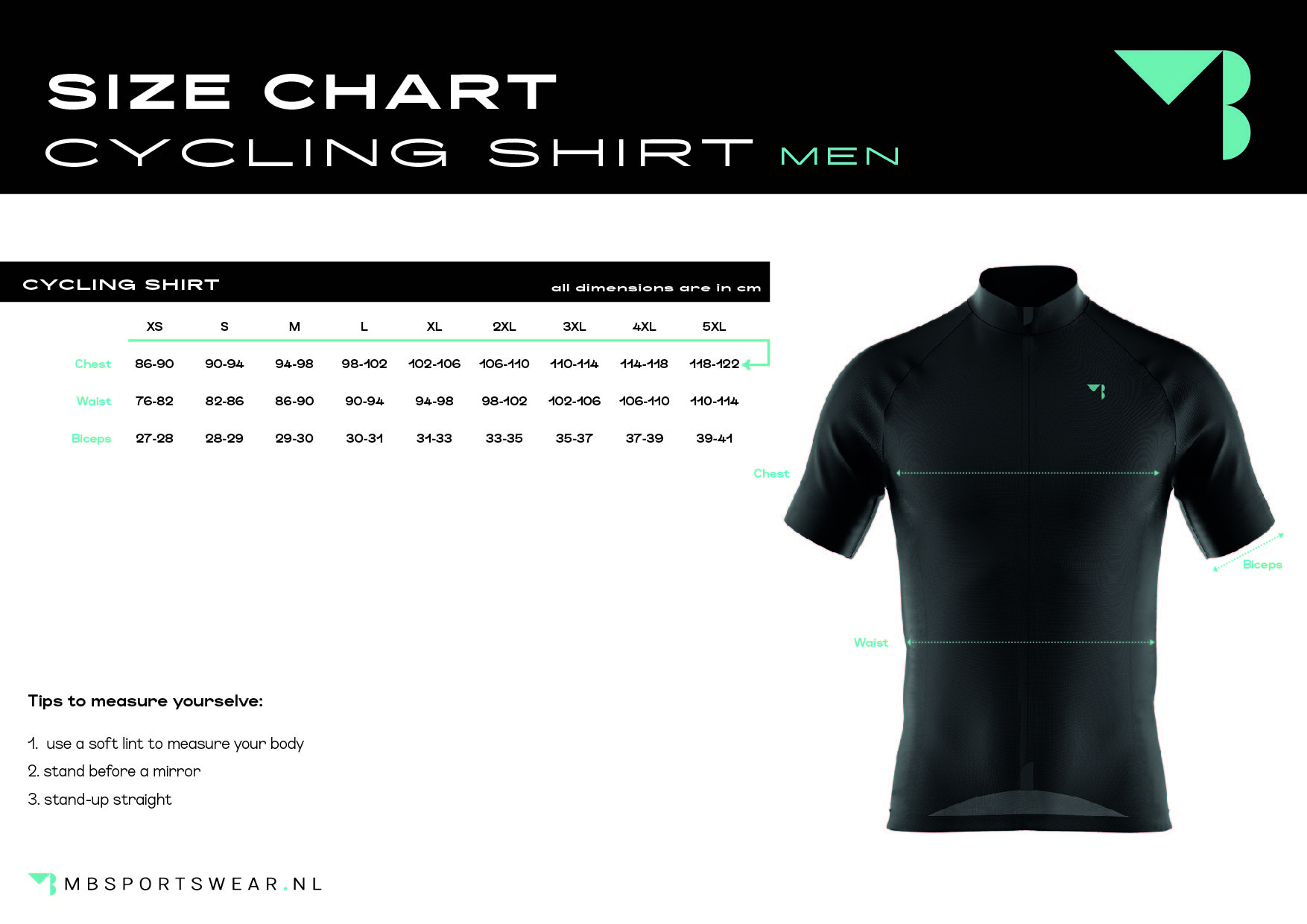 MB Sportswear wielershirts hebben een tight fit pasvorm. Gemaakt van goed ademend materiaal en veel stretch voor een maximaal rijcomfort. Het shirt heeft een korte verborgen rits, opstaande kraag en clean-cut set-in mouwen. In de 3 ruime achterzakken passen met gemak een telefoon, repen/banaan en een opgevouwen windvest.